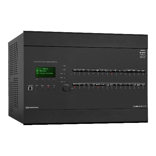 CRESTRON全模組化和可擴充的16x16 DigitalMedia矩陣切換器,可為所有類型的AV訊號源提供超快速的數位視頻和音频切換以及無損失高清多房間信號分配。基於3-Series®平台。通過支援高級的HDCP,EDID分辨率管理,CEC信號管理,USB信號路由,整合乙太網路交換機,同步7.1和立體聲音頻,提供對SD,HD,UHD,2K,4K60 4:4:4 HDR和計算機信號的全面管理,H.264串流傳輸以及各種可選的輸入和輸出類型。