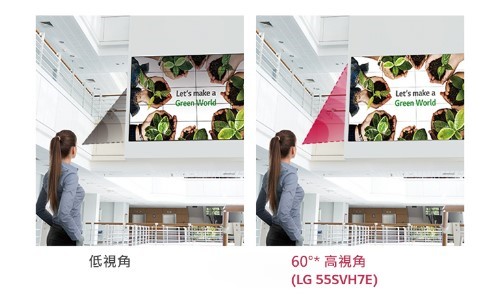 大螢幕的位置通常比人眼水平高,讓電視牆的影片品質劃一。55VH7E-H 的視角高,足以在整個螢幕上展現鮮豔色彩,不會出現失真。